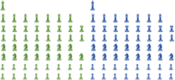 Las piezas (blancas y negras) con que cuenta cada jugador, son las siguientes: