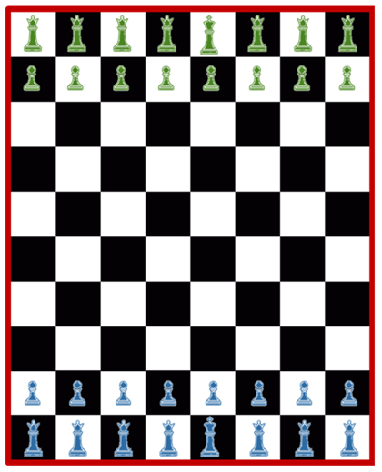 Cuando se colocan 2 barreras en la primera y última fila, se tiene un tablero de 8 x 8, equivalente a un tablero de ajedrez convencional.